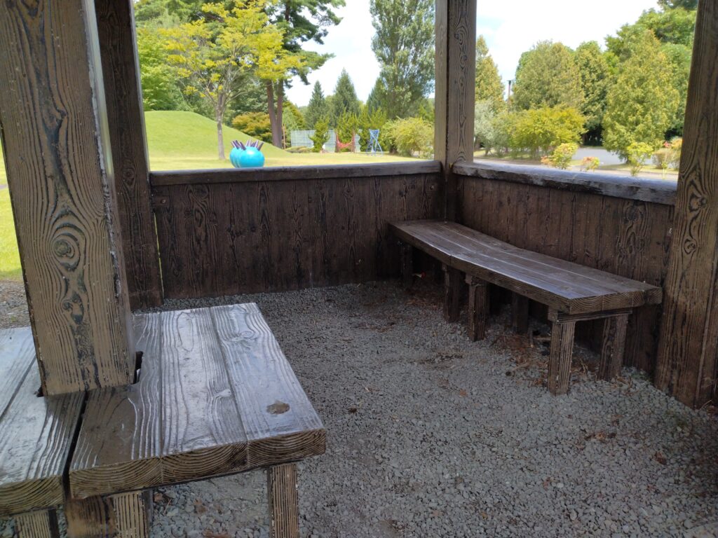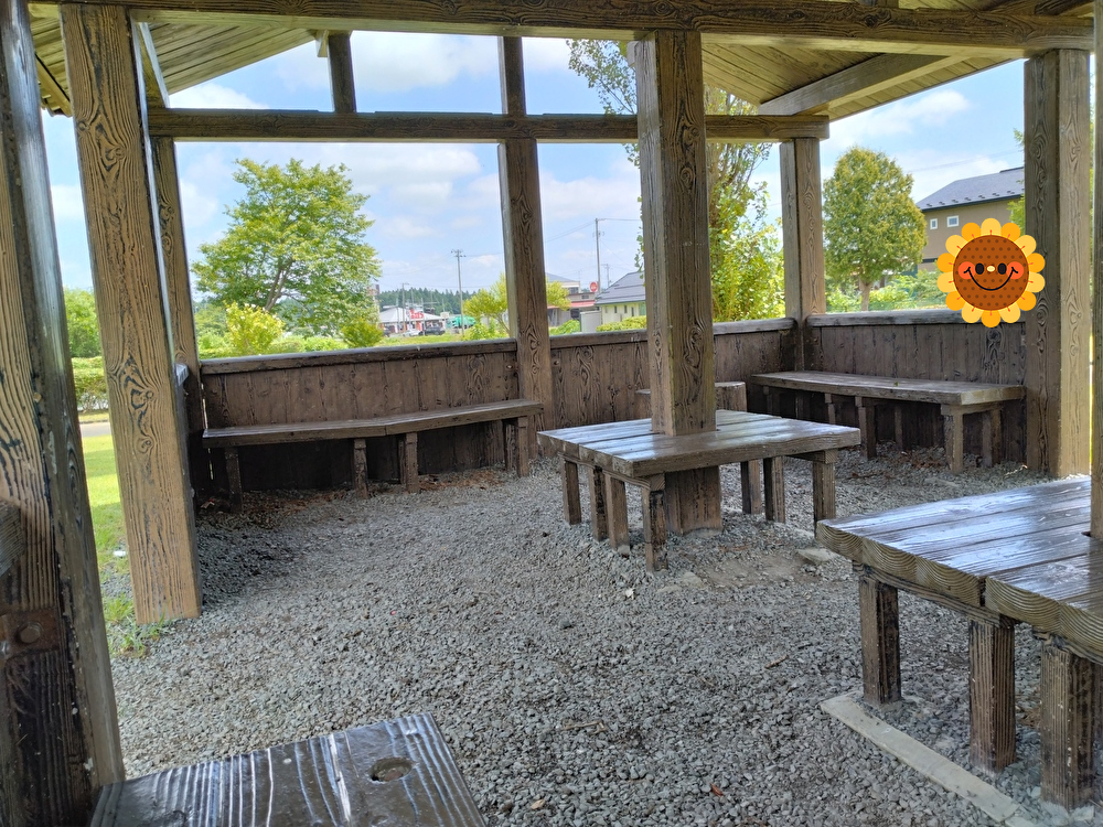 大きめの東屋、ベンチ、テーブルなどが設置されています。