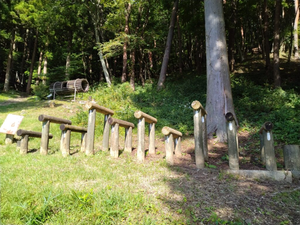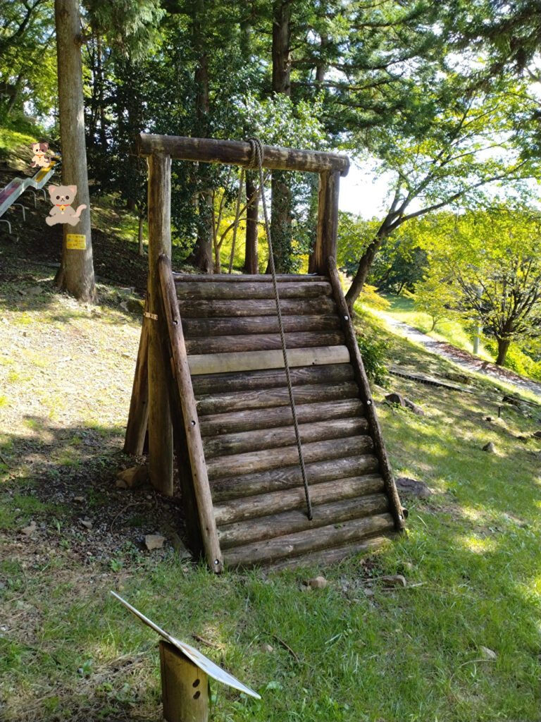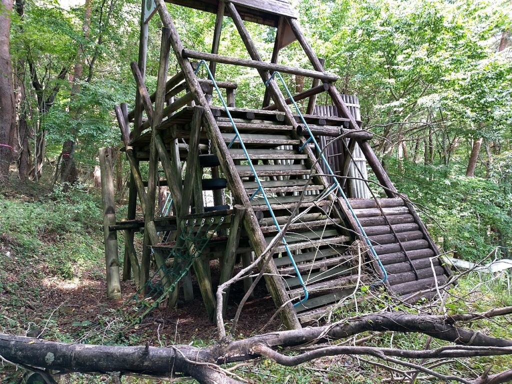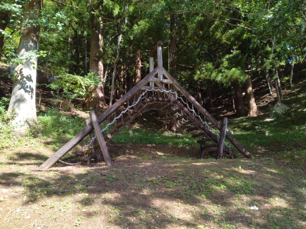 この先にあるそのほかのアスレチック遊具はまだ残ってはいますが、使用できないため整備されていません。