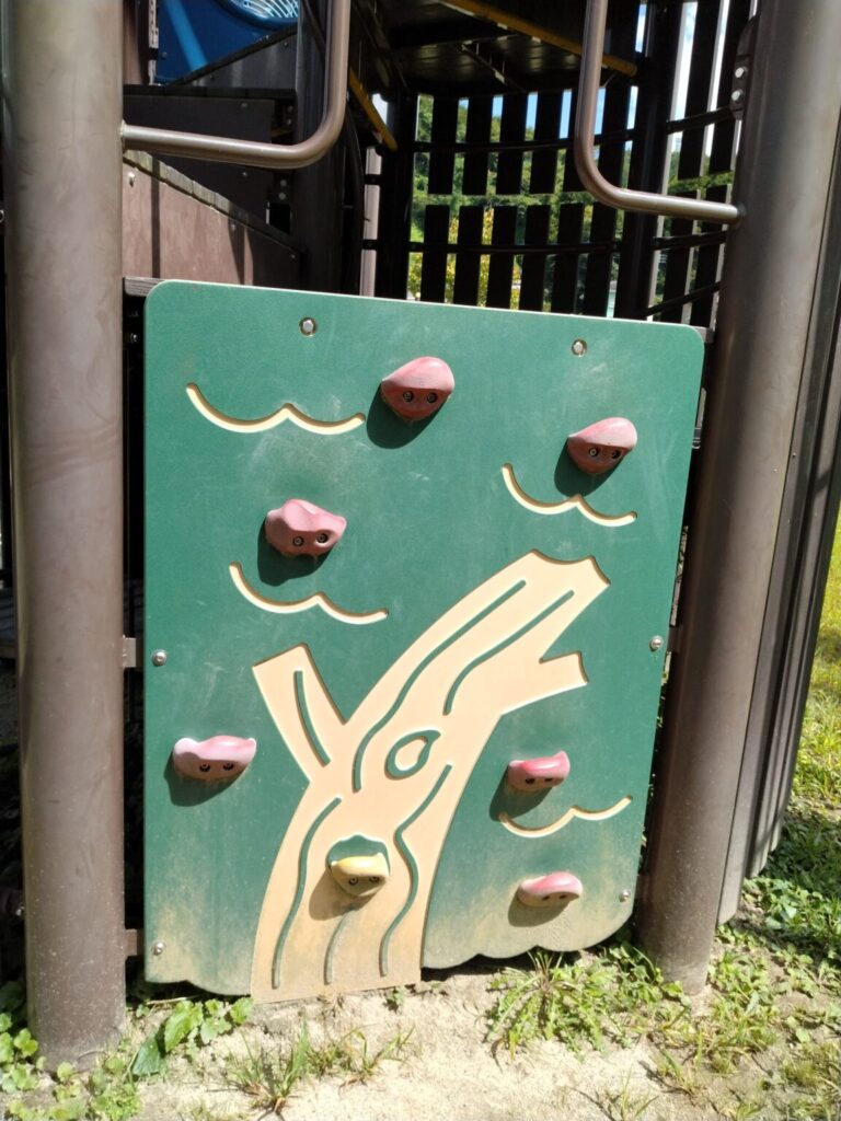 ボルダリング、ネット、滑り台、登り棒などなど。